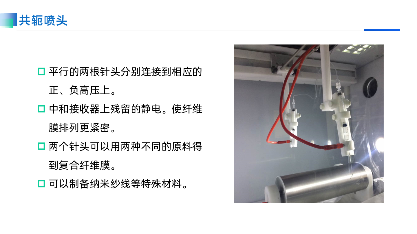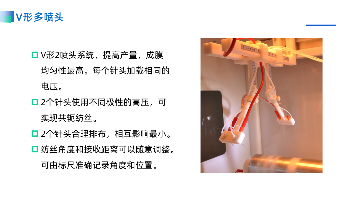 專用于共軛紡絲的噴頭支架,承載≥4個針頭進行共軛紡絲。