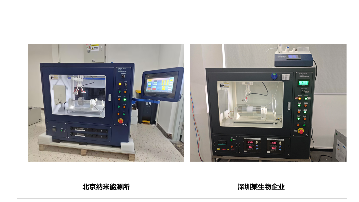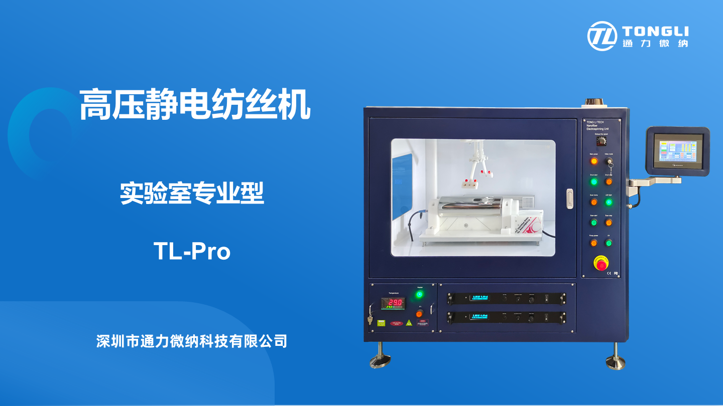 通力微納高壓靜電紡絲機TL-Pro,搭載正負高壓電源,并內置絕緣設計,既確保了紡絲箱的清潔,又保障了操作安全。其設計集成了單噴頭、多噴頭、同軸噴頭和并肩噴頭等多種噴頭系統,以及平板、滾筒、籠狀、超定向、細軸和碟狀等各類收絲器。噴頭與收絲器相互配合運動,同時具備獨立控制的雙通道微量泵,能夠滿足不同的實驗需求。此外,TL-Pro還提供三十余種升級配件,可根據不同的應用方向進行自由組合。這一多功能系統能夠制備多種形態的納米纖維,其產出的纖維膜均勻且厚度可調,保證了納米纖維膜制備的高度重復性。