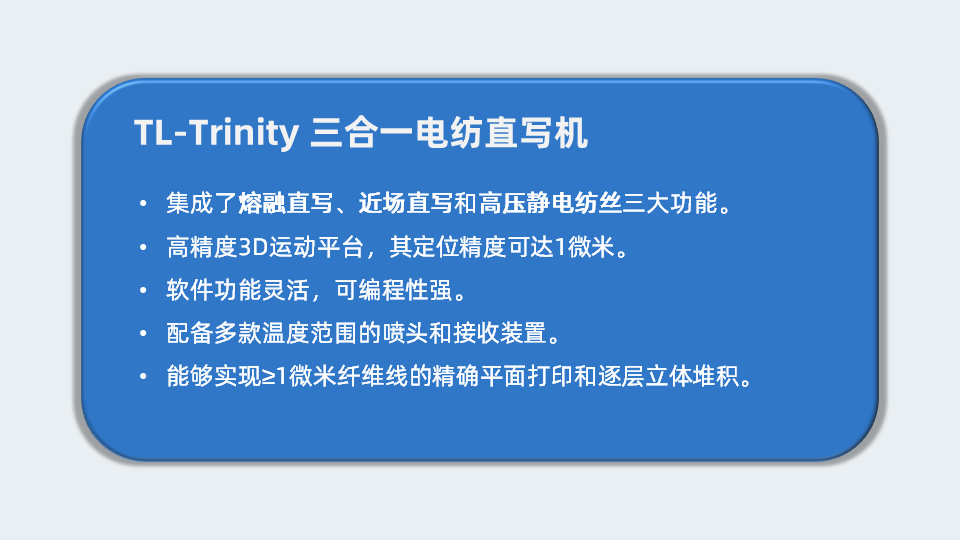 高壓靜電微納打印機(jī),采用高壓靜電技術(shù),結(jié)合高精度3D打印平臺(tái),實(shí)現(xiàn)微米/亞微米點(diǎn)的噴印、微米/亞微米線結(jié)構(gòu)的直寫和納米薄膜的噴涂,可以實(shí)現(xiàn)霧化制膜、電紡制膜,電紡直寫,以及精密微納米量子點(diǎn)、線的打印,從而制備預(yù)設(shè)的2D圖案和3D結(jié)構(gòu)。
